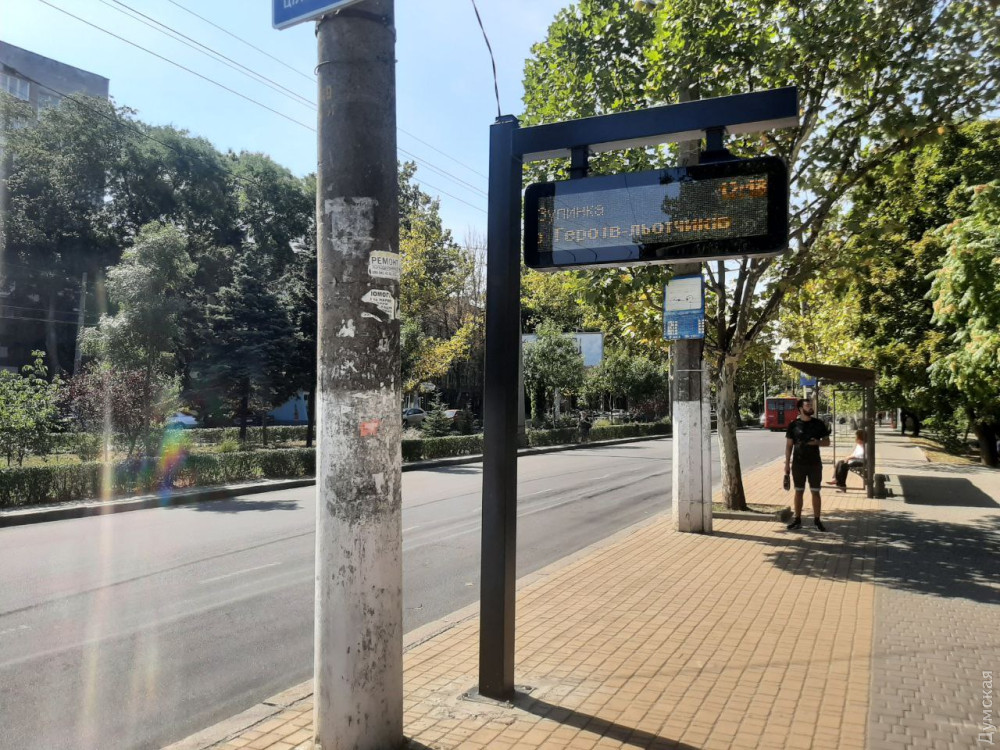 Несколько дней назад коммунальное предприятие «Одесгорэлектротранс» установило еще три таких табло на троллейбусных остановках «Пятая станция Большого Фонтана», «Первая станция Люстдорфской дороги» и трамвайной остановке «Красный крест».