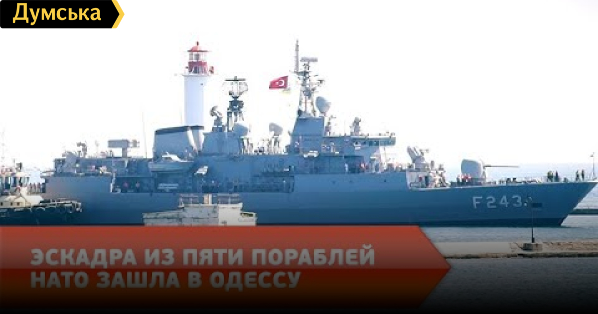 Сразу пять кораблей НАТО во главе с флагманом группы SNMG2 зашли в одесский порт. Военные прибыли в субботу для участия в финальной части учений «Си Бриз-2020». Флагман — испанский фрегат «Альваро де Базан».Кроме того, основные ударные силы это - турецкий «Йылдирим» и румынский «Регина Мария». Для участия в маневрах прибыли и корветы — снова румынский «Контр-адмирал Себастиан» и болгарский «Бодрый». Все корабли уже не раз гостили в Одессе, кроме испанца, который впервые в Черном море и в Одессе. СМЕРТЬ РОСІЙСЬКИМ ОКУПАНТАМ! Помітили помилку? Виділяйте слова з помилкою та натискайте control-enter Думская ТВ. Сюжеты:
