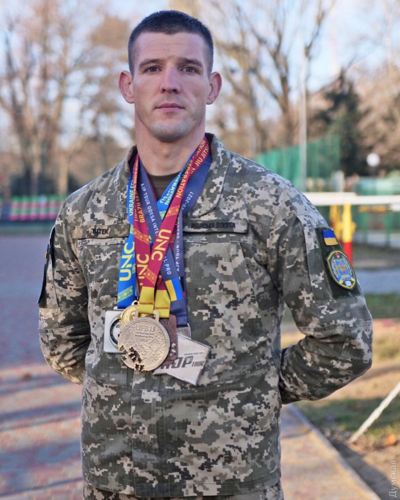 Сейчас у Никиты белый пояс с четырьмя полосками. Это значит, что он еще начинающий спортсмен, но уже претендует на следующую степень мастерства, синий пояс. При этом за год с лишним офицер завоевал немало наград: занял первое место на открытом чемпионате Украины по бразильскому джиу-джитсу UNC Gi в Киеве, первое место на чемпионате Одесской области по боевой самообороне и второе место на открытом международном чемпионате BJ AJP INTERNATIONAL PRO.