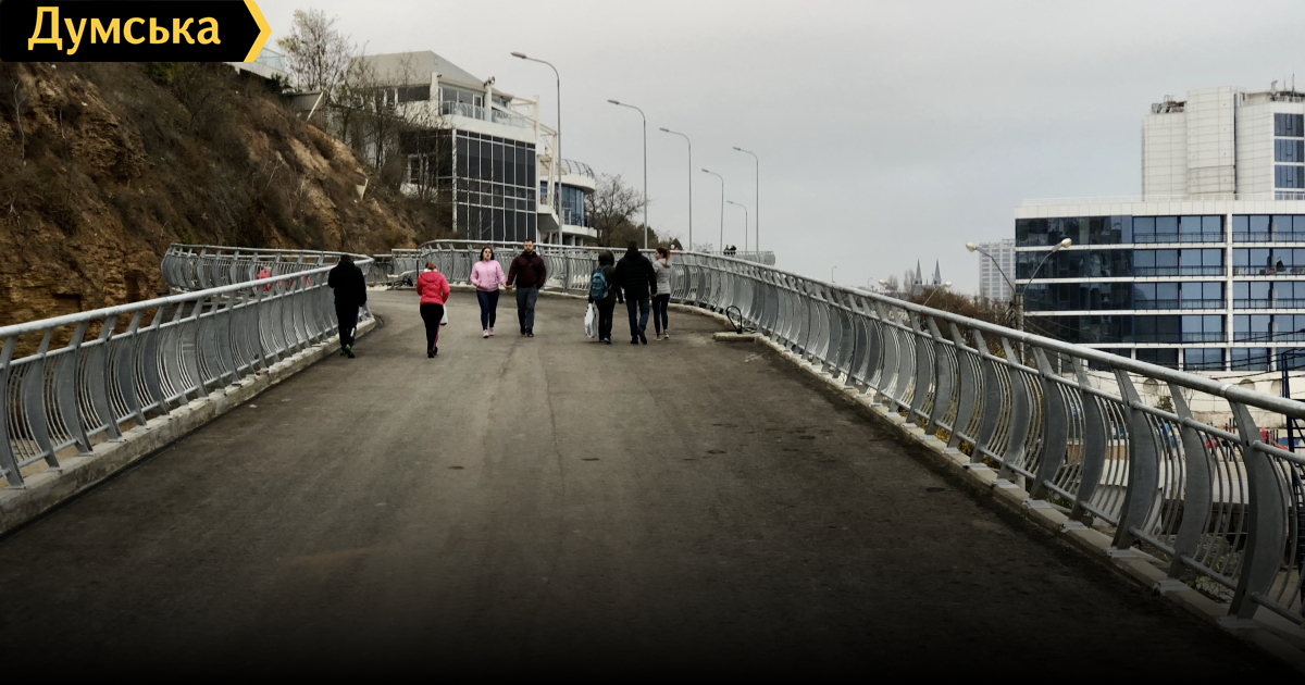 Лестница на 10 й ст. к морю — мрачная серого цвета, также и дорожка по другую сторону эстакады. Узкая,  с неприкрытой канавой. Склон не закреплен и местами уже сползает в эти канавы. Сама эстакада — с низкими перилами, для велосипедистов — опасная. Думаю, должно быть типа тещиного моста. Мрачная недоделка. Чем больше Труханов у власти, тем мрачной и неприветливой становится Одесса.
