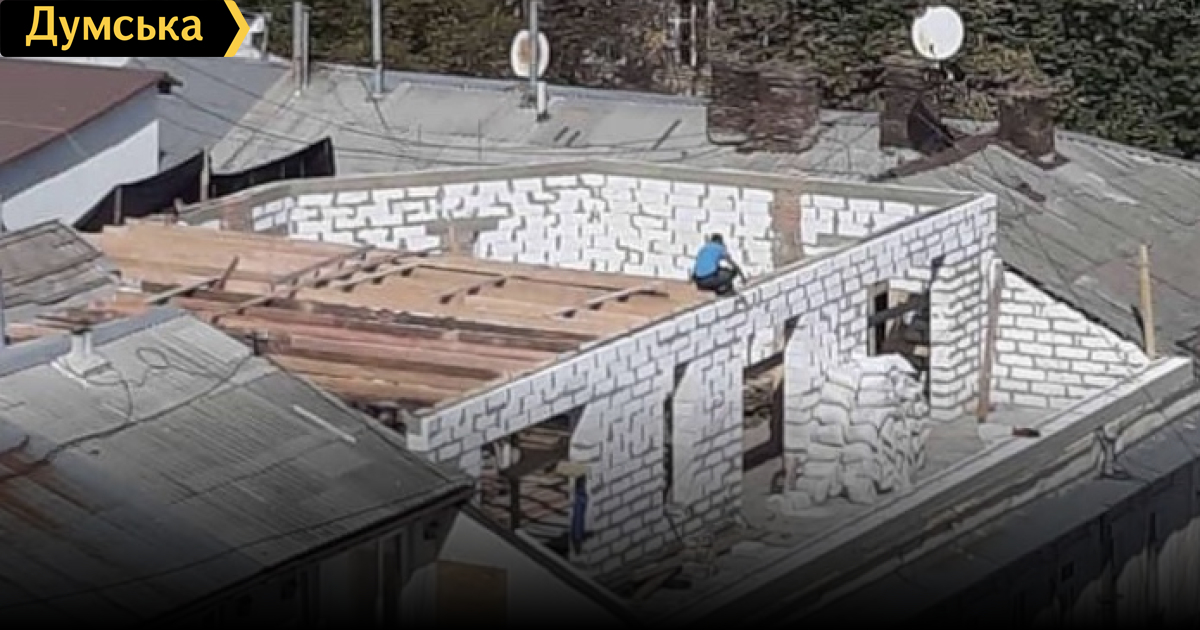 Хозяйка квартиры захватила крышу памятника архитектуры по адресу Дерибасовская, 1 и строит там мансарду.