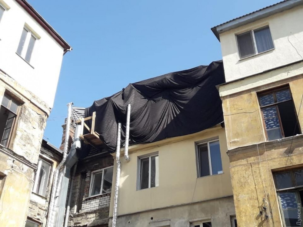 Хозяйка квартиры захватила крышу памятника архитектуры по адресу Дерибасовская, 1 и строит там мансарду. На незаконные работы соседи пожаловались в муниципальный Единый центр обращения граждан, передает корреспондент «Думской».