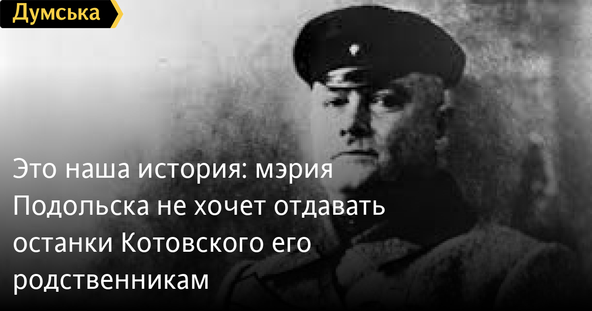 В мэрии Подольска знают о желании родственников Котовского увезти из Украины останки большевика, но заместитель городского головы утверждает, что такое решение не находится в компетенции органов власти. Если в МИДы Украины и России договорятся (что в нынешней ситуации нереально), то муниципалитет подчинится решению украинского правительства и парламента. Впрочем, есть одно «но». Громада Подольска просто не хочет расставаться с последним напоминанием о Григории Котовском. Напомним, саблю комкора отдали давно Кишиневу, медали – Москве.