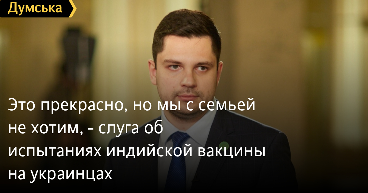 “Это прекрасно, но мы с семьей не хотим”, — “слуга” об испытаниях индийской вакцины на украинцахНардеп из фракции «Слуга народа» Александр Качура считает, что в принципе это очень хорошо, что Украина будет участвовать в испытаниях новой индийской COVID-вакцины. Об этом он заявил в эфире телеканала «Украина 24». Депутат уточнил, что это нормально, такое практикуют во всем мире. «Это прекрасно, когда наука развивается и появляется возможность вылечиться от коронавируса без какой-то инъекции. Если такие технологии будут, нужно ими воспользоваться. И страны, которые будут участвовать в испытаниях, первыми получат доступ к вакцинам», — отметил Качура. В то же время политик добавил, что участие в такой программе должно быть исключительно добровольным. При этом он признался, что лично он и его семья не хотели бы испытывать на себе новый препарат. «С человеческой точки зрения мы бы не принимали участия. Но в медицинском плане в этом есть здравый смысл», — отметил «слуга». Как известно, глава МОЗ Максим Степанов после поездки в Индию рассказал, что договорился с компанией BharatBiotech о том, чтобы в Украине проводились вторая и третья стадии испытаний вакцины в виде спрея для носа или капель. Министр добавил, что если украинцы примут в них участие, то потом смогут в числе первых получить новый препарат от коронавируса. СМЕРТЬ РОСІЙСЬКИМ ОКУПАНТАМ! Помітили помилку? Виділяйте слова з помилкою та натискайте control-enter