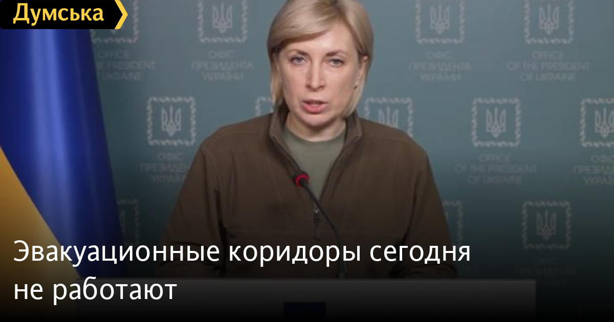 «Нам не удалось договориться с оккупантами о прекращении огня на маршрутах эвакуации. Поэтому, к сожалению, сегодня мы не открываем гуманитарные коридоры. Мы прилагаем все усилия, чтобы гуманитарные коридоры снова заработали как можно быстрее», — заявила она.