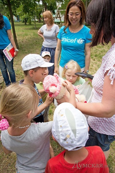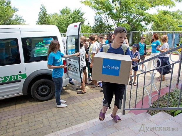 Международный фонд ЮНИСЕФ, с 1997 года осуществляющий поддержку маленьких украинцев, попавших в сложные жизненные обстоятельства, на этот раз привез подопечным гуманитарную помощь: более полусотни гигиенических наборов и новую одежду. Как рассказала глава представительства фонда в Украине Юкие Мокуо, с самого начала конфликта в Украине ЮНИСЕФ мониторил ситуацию в стране и начал предоставлять помощь уже первым переселенцам, вынужденным покинуть Крым.