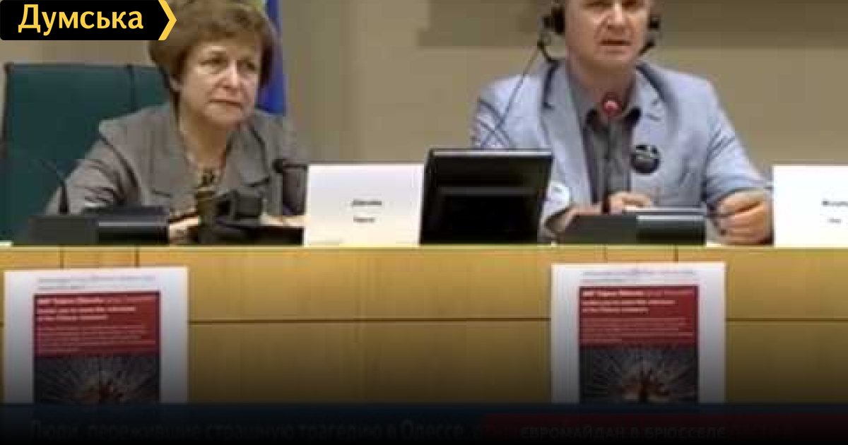 Европарламент организовал встречу со свидетелями одесской трагедии 2 мая, сторонниками федерализации. Среди них была и Елена Радзиховская, чей сын погиб в доме профсоюзов. Депутаты не пригласили к слову других свидетелей — проукраинских активистов. А по окончании встречи раздавали книгу «Нацизм и Евромайдан».