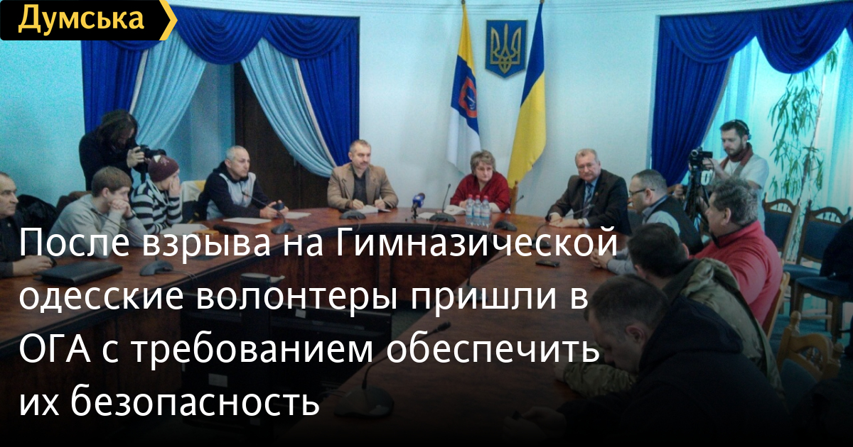 В здании ОГА проходит встреча активистов различных волонтерских и патриотических организаций с руководством областной администрации. Поводом стала серия недавних терактов, в частности — подрыв волонтерского центра на Гимназической.