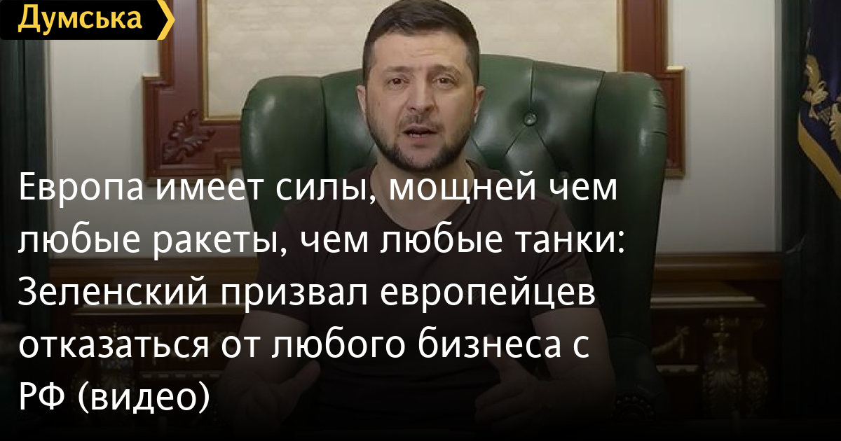 «Без торговли с вами, без ваших компаний и банков у России не будет денег на эту войну. Так пусть будет мир, как можно быстрей», — заявил Зеленский.
