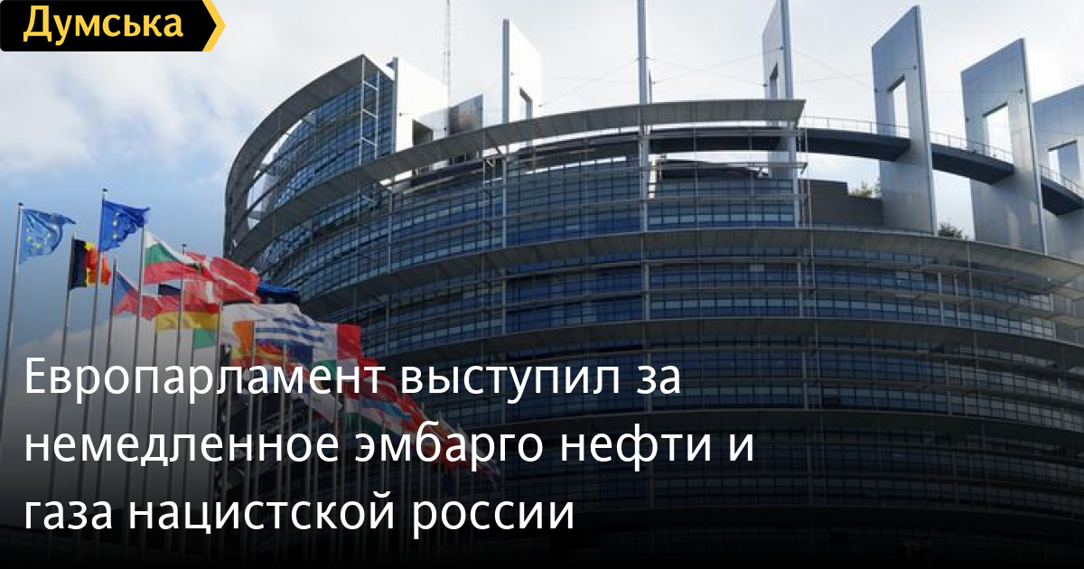 В резолюции отмечается, что Совету ЕС следует принять дальнейшие «жесткие санкции, которые бы соответствовали продолжающейся эскалации российской агрессии и шокирующим зверствам, совершенным армией рф, являющимся без сомнения военными преступлениями». Немедленное эмбарго на импорт в ЕС газа и нефти из рф.