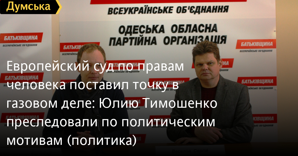 Европейский суд своим решением по второй жалобе Юлии Тимошенко подтвердил, что так называемое «газовое дело» против нее было политически мотивированным, тем самым поставив точку в долгоиграющем политическом преследовании лидера партии «Батькивщина».