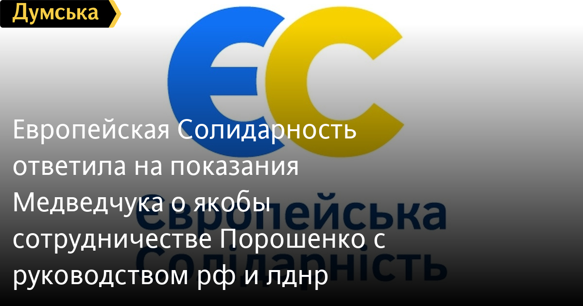 Партия «Европейская Солидарность», которую возглавляет пятый президент Украины Петр Порошенко, отреагировала на публикацию Службы безопасности Украины, в которой ведомство приводит показания задержанного Виктора Медведчука о якобы причастности Порошенко к нелегальным схемам, связанным с руководством росии, а также главарям так называемых «лднр».