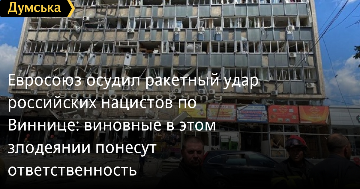 «Сегодня российские силы вторжения в Украину атаковали гражданское здание и культурный центр в городе Виннице, убив более 20 человек и ранив десятки других, многие из них в критическом состоянии, — отмечают они. — Это зверство в Виннице является последним в длинной череде жестоких нападений, направленных против мирных жителей и гражданской инфраструктуры.