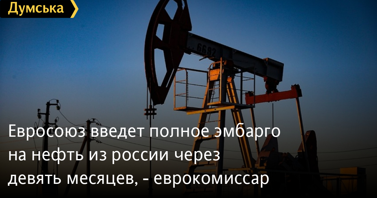 Европейский союз намерен ввести полное эмбарго на нефть из россии в течение девяти месяцев.