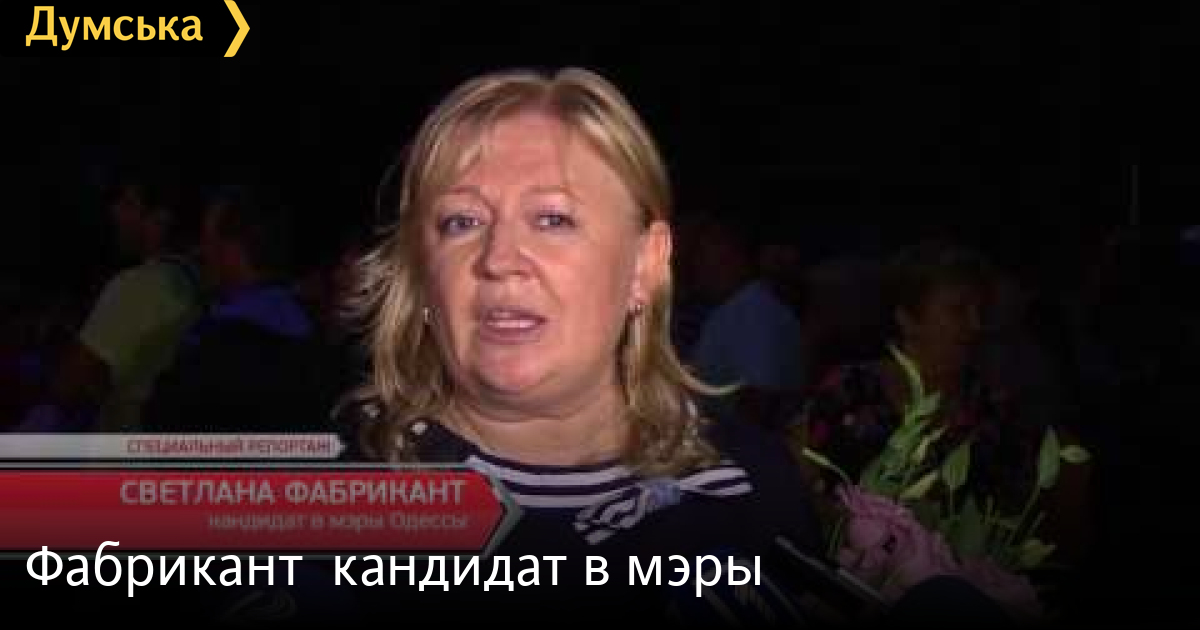 Кандидат в мэры от партии «Возрождение» Светлана Фабрикант провела встречу с жителями поселка Таирова. В Киевском районе народный депутат Украины презентовала свою предвыборную программу СМЕРТЬ РОССИЙСКИМ ОККУПАНТАМ! Заметили ошибку? Выделяйте слова с ошибкой и нажимайте control-enter Думская ТВ. Сюжеты: