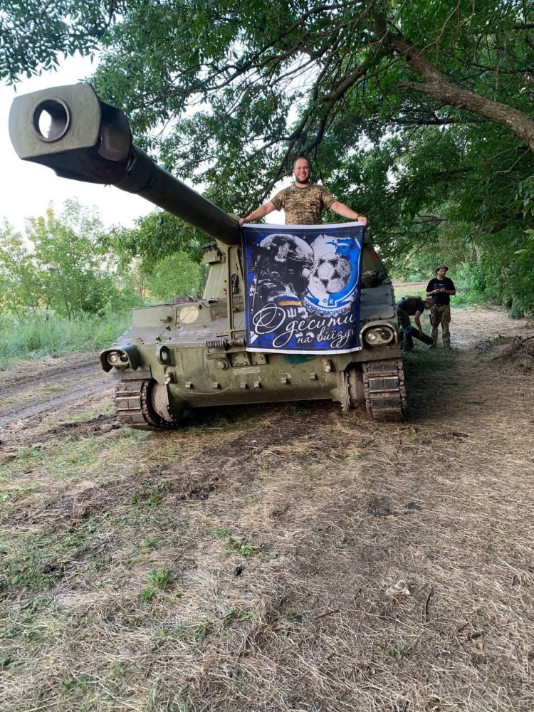 Шанувальники одеської команди служать у розрахунку американської САУ M109 Palladin.