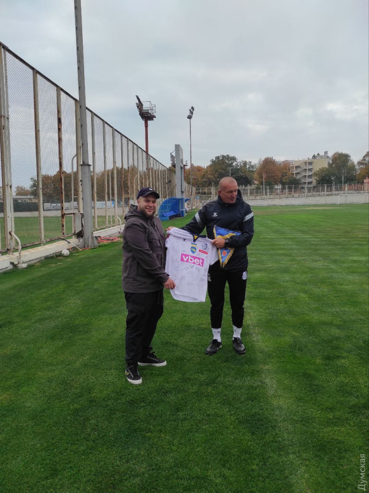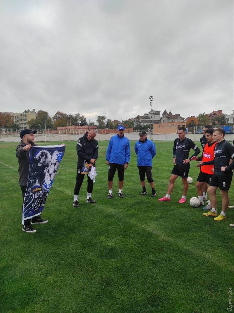 Футболісти одеського «Чорноморця» отримали від фронтовиків фанатський прапор клубу, який пройшов із ними бої.