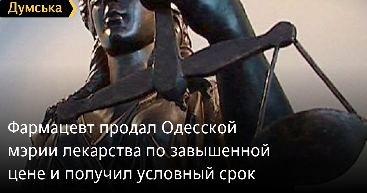 Коминтерновский районный суд Одесской области приговорил к пяти годам лишения свободы с испытательным сроком в год и шесть месяцев директора фирмы «Аквамед», который продал управлению здравоохранения Одесского горсовета лекарства по завышенным ценам, чем нанес муниципальному бюджету ущерб в размере 1,5 млн грн. Об этом «Думской» сообщили в аппарате суда.