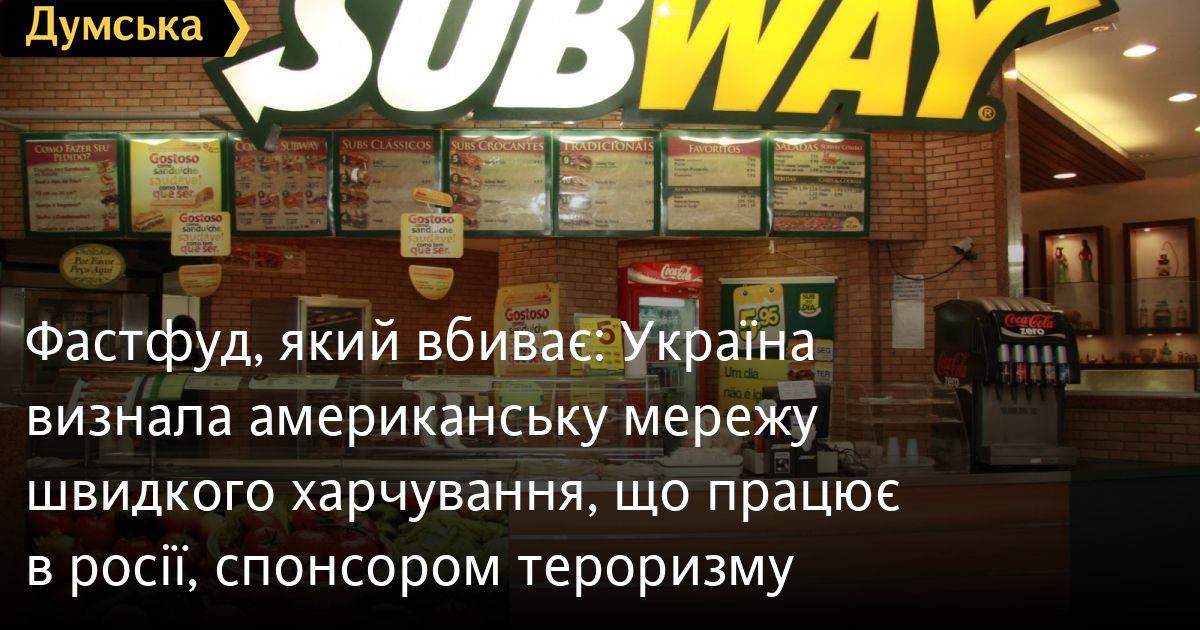 Американську багатонаціональну франшизу ресторанів швидкого харчування Subway внесли до переліку міжнародних спонсорів війни.