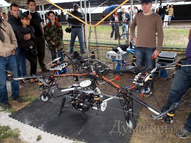Гостей также развлекали полетами радиоуправляемых авиамоделей. Между маленькими копиями настоящих самолетов даже разгорелся самый настоящий воздушный бой - вот тут были все фигуры высшего пилотажа. Кроме того, одесситам показали радиоуправляемый вертолет-робот, задача которого — нести на себе фотоаппарат и заниматься аэрофотосъемкой.