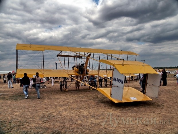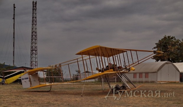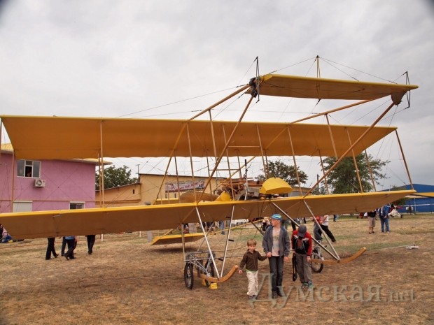 Не оправдались надежды увидеть в небе гордость одесских авиаторов — реплики исторических самолетов «Фарман-IV» и «Анатра». Первый, по словам Константина Оборина, уже третий год не могут зарегистрировать — дескать, самодельная конструкция, и все такое. А с «Анатрой», принадлежащей авиаремонтному заводу, получилась бюрократическая закавыка — завод буквально несколько дней назад сменил название. В результате чего вся принадлежащая ему авиатехника подлежит обязательной перерегистрации, что сделать за пару дней нереально. Поэтому одесситы смогли лишь полюбоваться стоящим на летном поле «Фарманом».