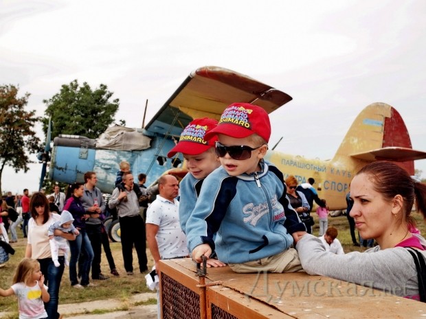 Во второй день феста на грунтовом летном поле яблоку негде было упасть — на аэродром съехались тысячи людей. Дело дошло до того, что заранее подготовленной парковки на несколько сотен мест не хватило: машины парковались вдоль дороги на Гидропорт и даже у трассы, проходящей по Межлиманью.
