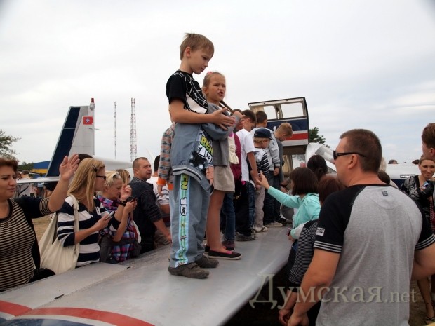 Дети буквально облепили самолеты, стоявшие в зоне, доступной для зрителей. Причем облепили настолько, что одному из самолетов после фестиваля понадобится ремонт — по нему прошлись сотни детских ножек.