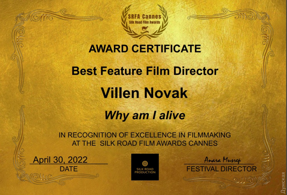 Снятая на Одесской киностудии лента «Почему я живой» режиссера Виллена Новака одержала победу в номинации Best Feature Film Director на фестивале Silk Road Film Awards в Каннах.