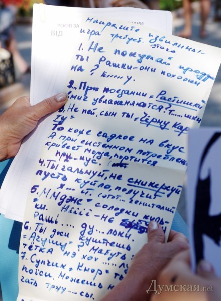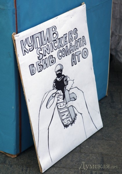 После этого, тоже по свистку, поднялись. Потом, немного поскандировав о том, что Путин – йоббик, а также сами-знаете-что, приступили к массовым чтениям частушек о вреде российских товаров, вроде «Сникерса» и «Галины Бланки».