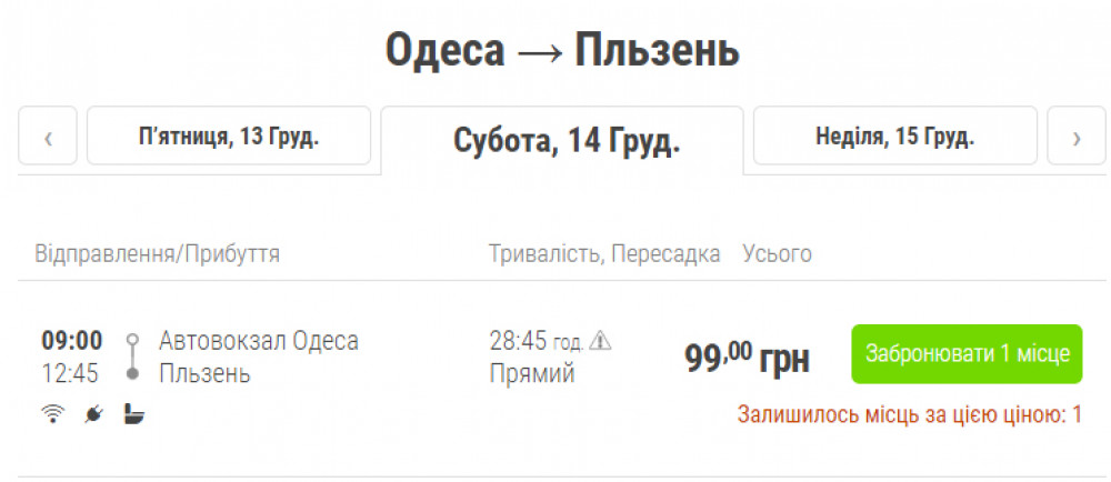 С 11 декабря крупнейший европейский перевозчик FlixBus открывает первый украинский маршрут, на котором будут работать фирменные зеленые автобусы. Это направление Одесса-Пльзень (Чехия).