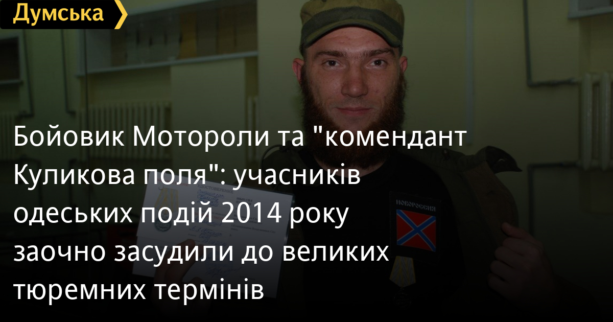 Громадянину Росії Фомінову, який до травня 2014 року був комендантом наметового табору на одеському Куликовому полі, дали десять років позбавлення волі, його спільникові Культі (українцю) — 14-ть. Справа в тому, що у 2013 році Малинівський райсуд Одеси засудив чоловіка до п'яти років за збут наркотиків, замінивши покарання випробувальним терміном. Частину невідбутого строку йому додали.