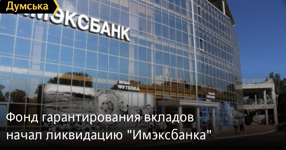 «В соответствии с постановлением правления НБУ от 21 мая 2015 года №330 «Об отзыве банковской лицензии и ликвидации ПАО «Имэксбанк» исполнительная дирекция Фонда гарантирования вкладов физических лиц приняла решение от 27 мая 2015 года № 105 «О начале процедуры ликвидации ПАО «Имэксбанк» , - сообщили в пресс-службе ФГВФЛ.
