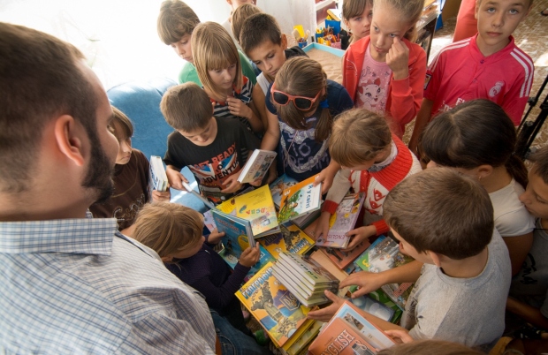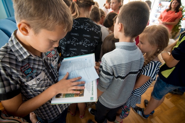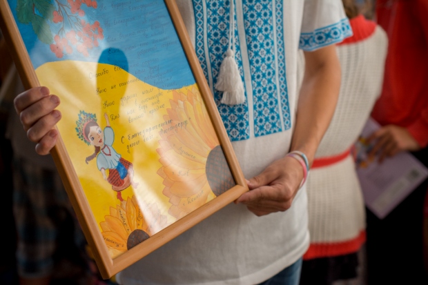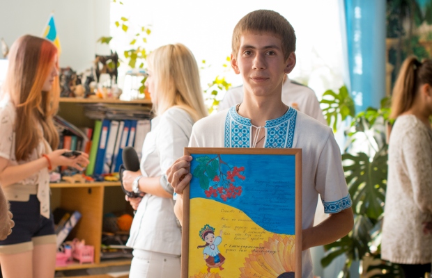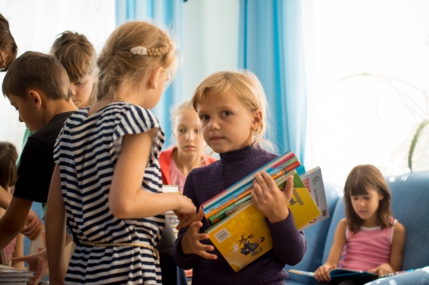 Учебники от нулевого по девятый классы сразу же раздали детям. «Мне нравится новый запах книг, я люблю их читать», — говорит воспитанница санатория «Люстдорф» Таня. В свою очередь, дети подарили представителю фонда картину «Единство Украины».