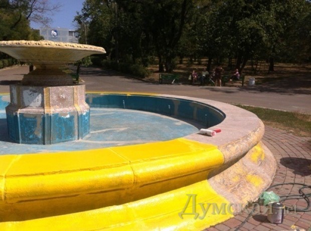 Коммунальщики заканчивают реставрацию фонтана, расположенного на центральной аллее парка Шевченко.