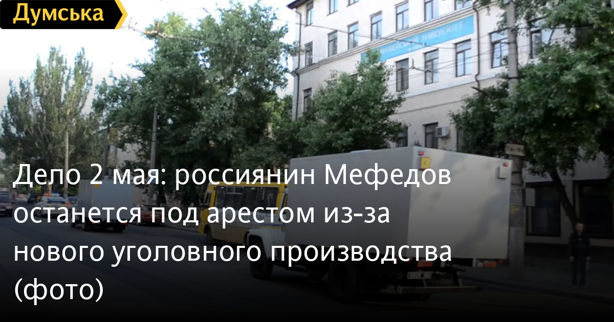 Фигурант дела о событиях 2 мая в Одессе, гражданин России Евгений Мефедов останется под стражей в связи с открытием в отношении него нового уголовного производства по статье 129 УК Украины (угроза убийством). Об этом «Думской» сообщил источник в правоохранительных органах.