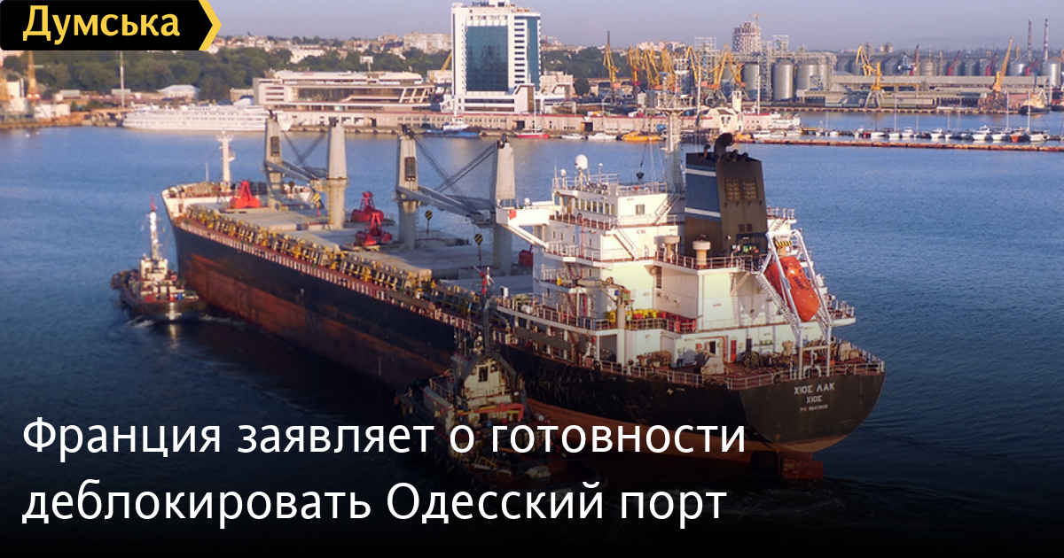 В Париже заявили о готовности участвовать в операции по деблокаде Одесского порта, что позволит судам заходить в гавань.