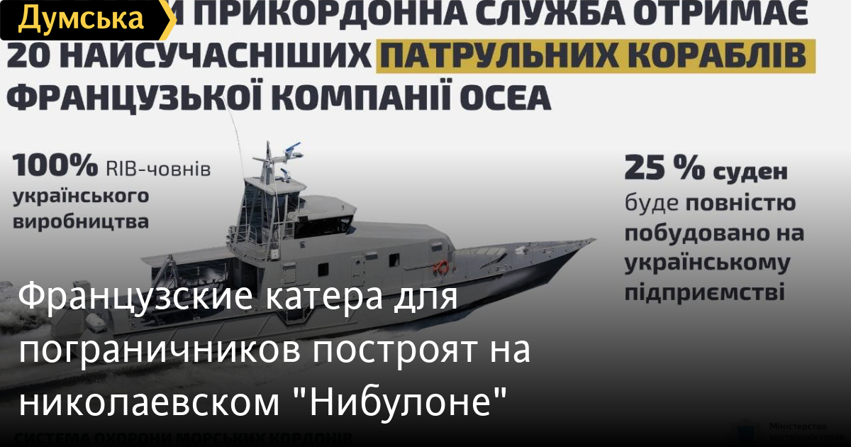 Государственная пограничная служба Украины официально начала переговорную процедуру приобретения новых кораблей. За три с половиной года Морская охрана ГПСУ получит двадцать французских катеров OCEA FPB 98 MKI, пять из которых будут построены в Николаеве на заводе «Нибулон».