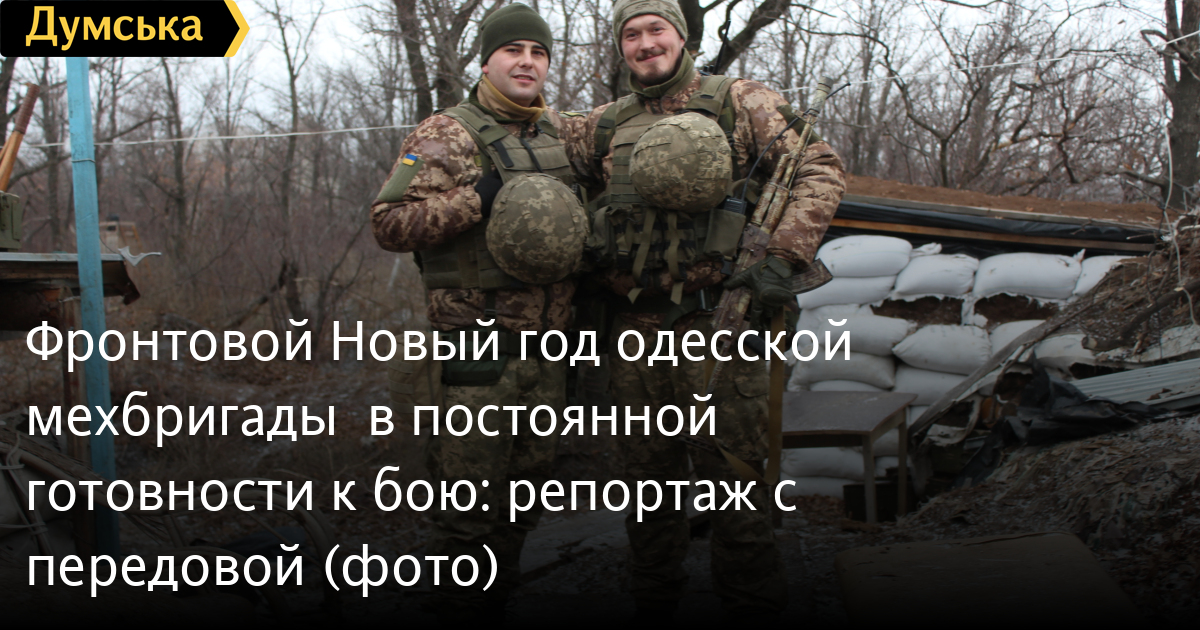 До Нового года осталось всего ничего, и Одесса замерла в предпраздничных пробках: «зубожілий» народ скупается к заветной ночи, сметая с полок супермаркетов продукты и горячительные напитки. Тем временем другие наши земляки в эти дни чистят оружие и с тревогой осматривают горизонт, ожидая вражеских провокаций. Праздновать, конечно, они тоже будут, но без алкоголя и готовые в любой момент по тревоге занять позиции, чтобы дать отпор супостату. Военное положение отменили, однако особый период продолжается, и война никуда не делась. Специальный корреспондент «Думской» побывал в расположении 28-й одесской мехбригады, которая продолжает защищать свободу и территориальную целостность Украины на востоке нашей страны.