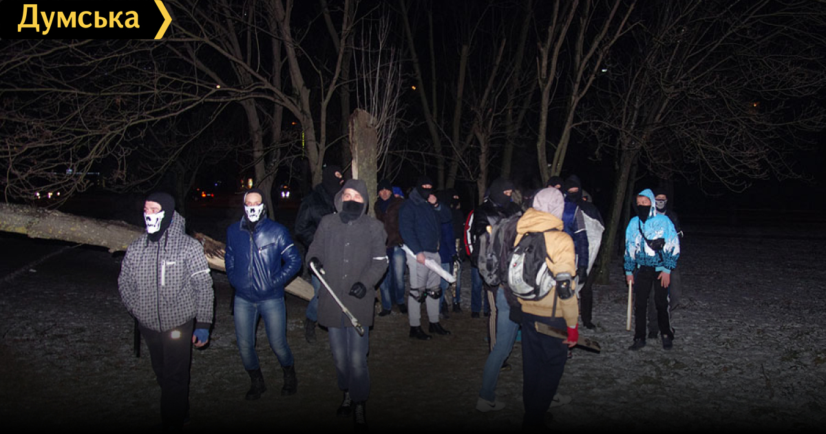 В районе областной государственной администрации до сих пор продолжаются массовые народные гуляния. Группа молодых людей, прячущих биты и железные прутья за спинами, через дворы дошла от киностудии до парка вокруг ОГА. Здесь им преградила путь четверка великолепных полковников милиции, в том числе замначальника областного УВД Дмитрий Фучеджи. Вооруженный одним только добрым словом он наставил неравнодушных горожан на путь истинный, попросив их «убрать оружие» и уверив в том, что «милиция сама справится».