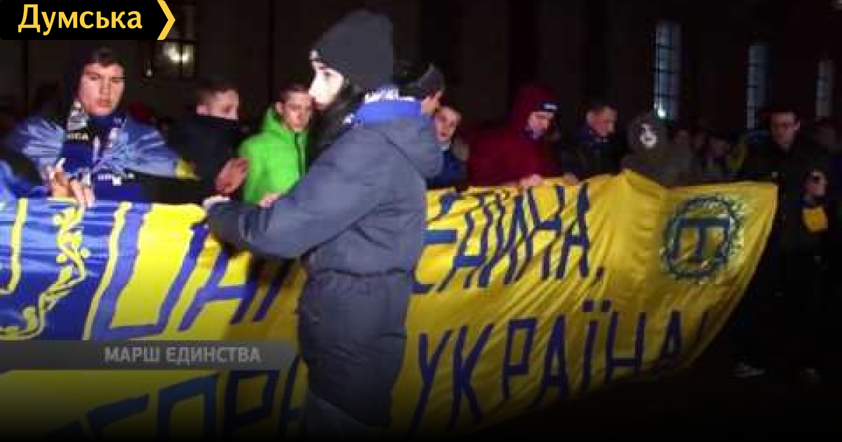 Знаменосцы и барабанщики. В субботу в преддверии футбольного матча Украина-Финляндия фанаты со всей страны прошлись маршем по центру Одессы. В акции приняли участие более пятисот человек. СМЕРТЬ РОСІЙСЬКИМ ОКУПАНТАМ! Помітили помилку? Виділяйте слова з помилкою та натискайте control-enter Думская ТВ. Сюжеты: