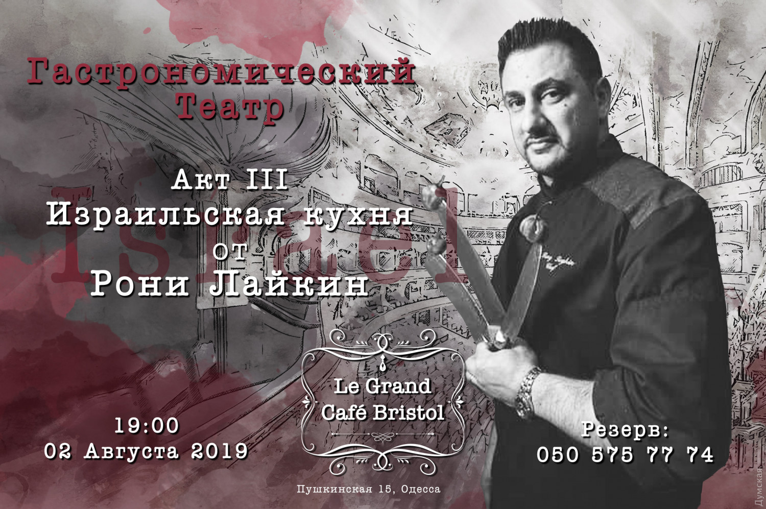 Гастроли в Le Grand Cafe Bristol: в Одессе будет творить гастрономические шедевры именитый шеф-повар из Израиля (новости компаний)Прославленный на весь Израиль шеф-повар Рони Лайкин, который творит настоящие гастрономические чудеса на кухне, уже на этой неделе будет удивлять одесситов и гостей города. Рони Лайкин станет гостем Le Grand Cafe Bristol и вместе с помощниками приготовит изысканные блюда для посетителей. В меню вечера: * Мини хала с палитрой закусок: шафрановое масло, баклажан «Масабаха», салат «Маливия»; * Традиционное севиче из морской рыбы с креветкой, халуми, табуле и салатом «Фатуш»; * Средиземноморская рыба с соусом Храйме и коктейлем из анисовой водки с грейпфрутовым соком; * Суп праздника — куриный консоме с печеночно-миндальными кнейдлями и овощами; * Дуэт: баранье ребрышко и «сладкое мясо теленка» с пряностью миджадара, зеленой пшеницей, фалафелем и овощами; * Десерт «Малаби» из теста кадаиф с риккотой, розовым сиропом и фисташкой. Вас ждут 2 августа в 19:00 в Le Grand Cafe Bristol. Резерв столиков по телефону 050-575-77-74. СМЕРТЬ РОСІЙСЬКИМ ОКУПАНТАМ! Помітили помилку? Виділяйте слова з помилкою та натискайте control-enter |