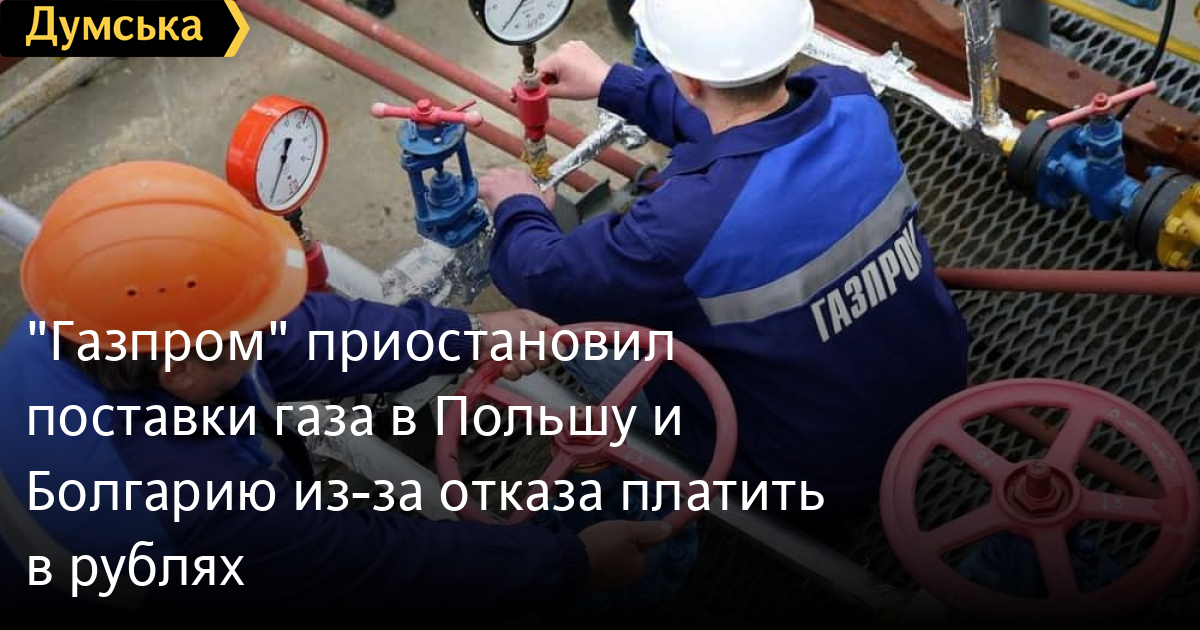 Российский монополист «Газпром» с 27 апреля прекращает поставки газа в Польшу и Болгарию из-за того, что они отказались выполнить требование компании и платить за газ в рублях.