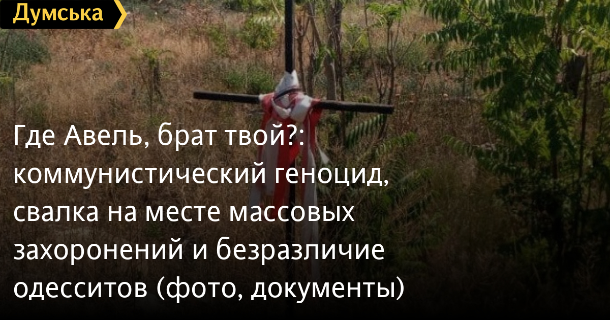 «Думская» публиковала эти страшные бумаги и даже восстанавливала биографии палачей. Однако убивали коммунисты не только в рамках «операции», но и до, и после нее. Людей пытали и расстреливали на Екатерининской площади, на Маразлиевской, на Преображенской, Еврейской, в Сабанском переулке. Пройдитесь по этим улицам и попробуйте найти хотя бы маленькую мемориальную табличку в память о тех трагических событиях и их жертвах. Нет их… А на 6-м километре – и вовсе свалка. К слову, по слухам, там готовится масштабное строительство. После которого, понятное дело, никто никого и никогда не найдет.