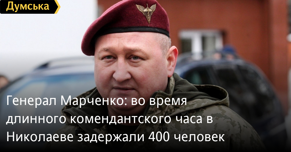 Генерал Марченко: під час довгої комендантської години у Миколаєві затримали 400 людейПід час довгої комендантської години у Миколаєві з вечора 5 до ранку 8 серпня було затримано 400 осіб. Про це повідомив генерал-майор Дмитро Марченко, який у лютому-березні організував оборону Миколаєва, а нещодавно знову повернувся до міста. «Я поки не можу про це говорити, але комендантська година пройшла дуже вдало, дуже добре «почистили» місто, крім колаборантів знайшли дуже багато інших правопорушень, вихідні пройшли не просто так», — запевнив Марченко. Нагадаємо, раніше голова Миколаївської ОВА Віталій Кім говорив про те, що було затримано п'ятьох осіб, відкрито 20 кримінальних проваджень і «розібралися з однією групою». СМЕРТЬ РОСІЙСЬКИМ ОКУПАНТАМ! Помітили помилку? Виділяйте слова з помилкою та натискайте control-enter |