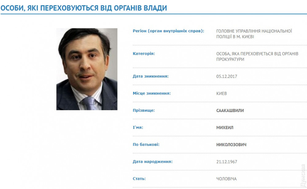 Генеральная прокуратура Украины объявила в розыск экс-главу Одесской областной администрации Михаила Саакашвили.