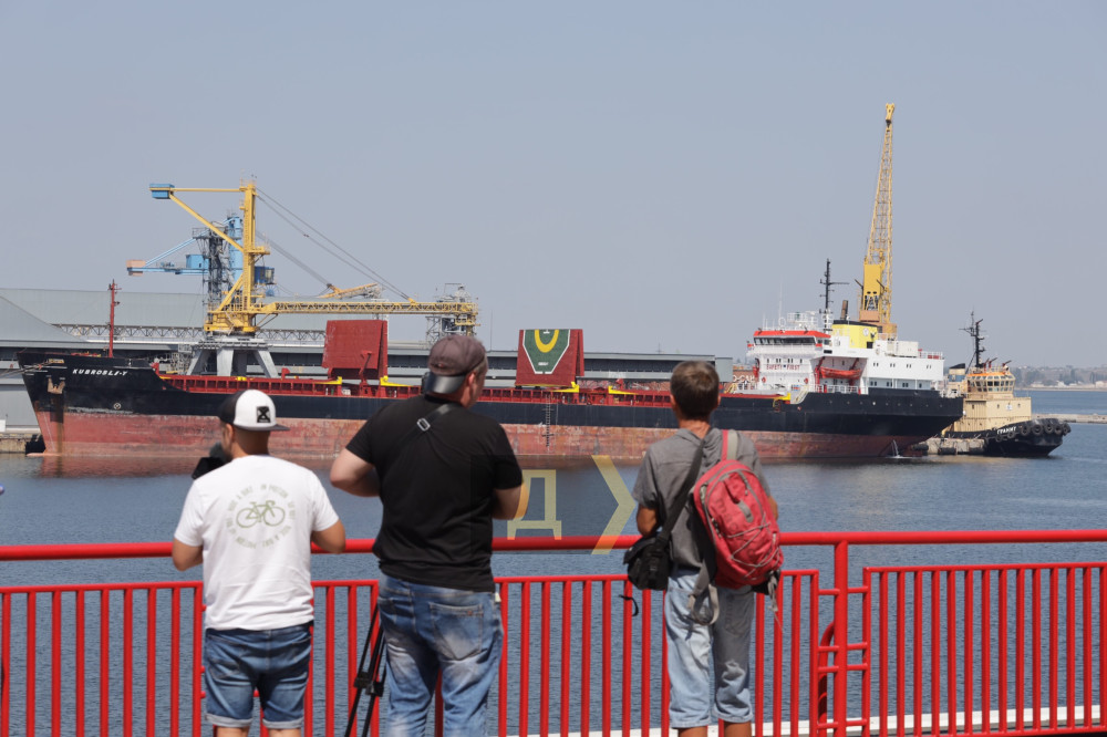 Спостерігаючи за завантаженням балкера Kubrosli-Y, який вивезе з одеського порту майже 10 тисяч тонн пшениці, Антоніу Гутерріш дав невеликий брифінг одеським, національним та міжнародним ЗМІ на морському вокзалі.