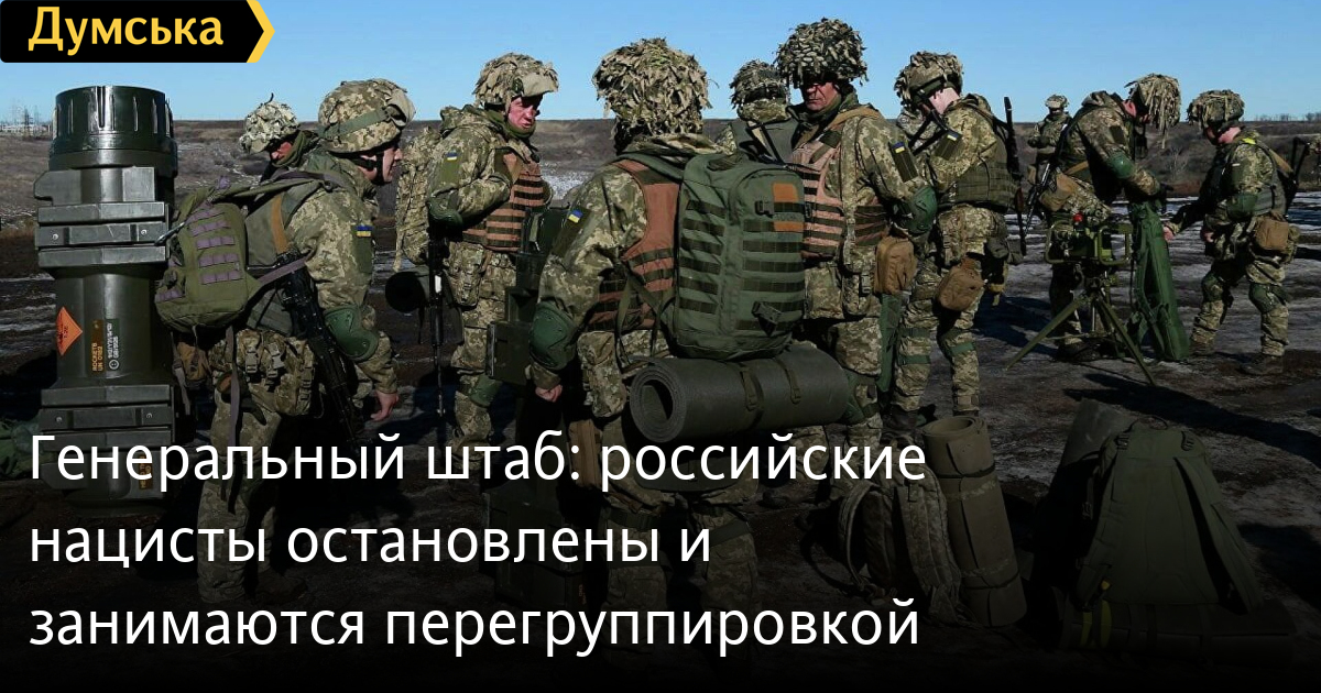 По оперативной информации Генерального штаба ВС Украины на 12:00, понеся потери на полесском, северском, южнобужском направлениях, противник остановлен на ранее достигнутых рубежах, осуществляет перегруппировку войск, восстанавливает боеспособность подразделений, пополняет запасы.
