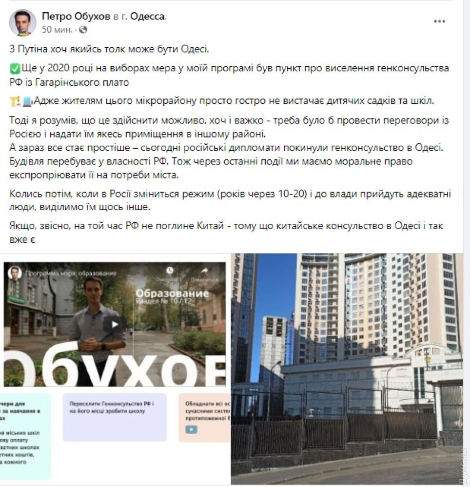 «Когда-то потом, когда в России сменится режим и к власти придут адекватные люди, выделим им что-то другое. Если, конечно, к тому времени РФ не поглотит Китай. Китайское консульство в Одессе и так есть», — отметил он.