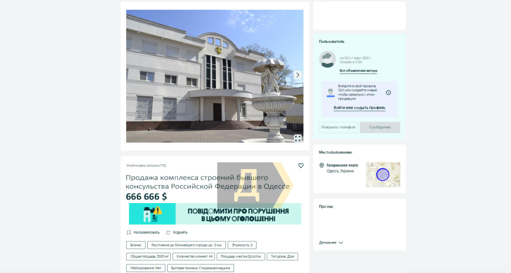 Комплекс генконсульства Российской Федерации в Одессе, покинутый сегодня дипломатами и шпионами, уже продается.