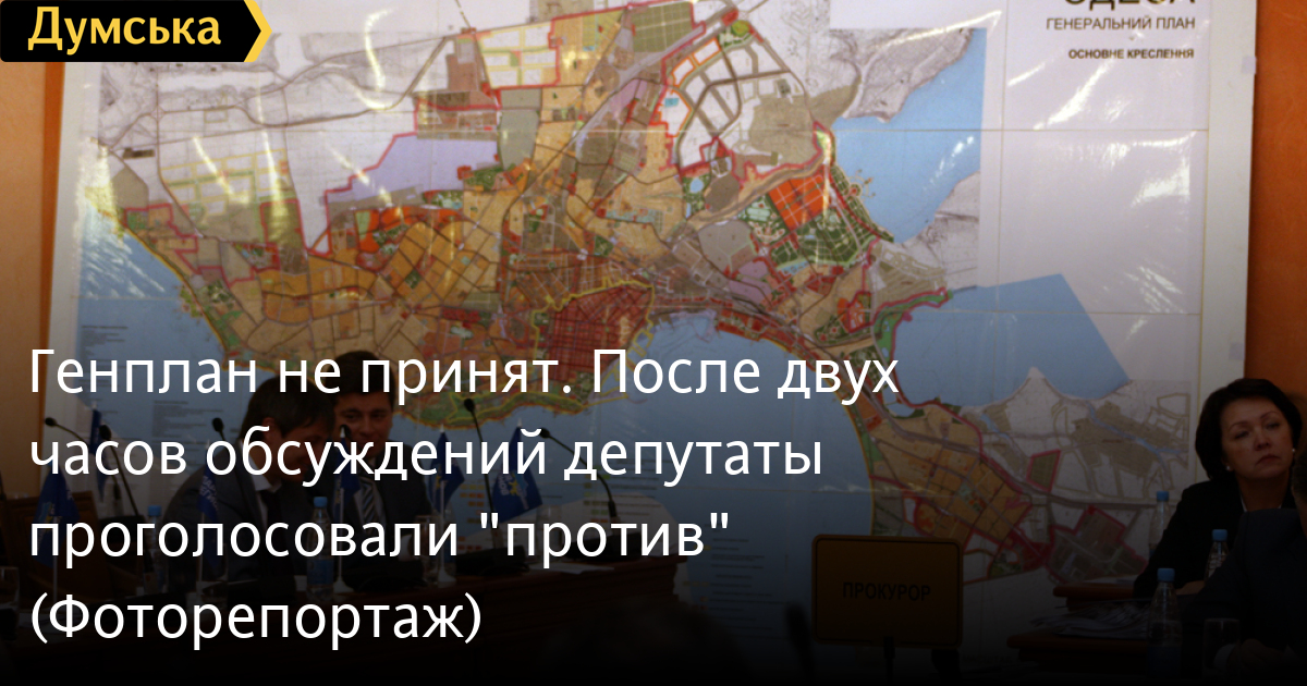 Вопрос о принятии Генерального плана Одессы вызвал бурное обсуждение, продолжавшееся почти два часа. Столь масштабных прений, в которых участвовали даже представители общественности, в Одесском городском совете не было уже несколько лет. В итоге горсовет, сделав вид, что пошел навстречу пожеланиям общественности, не принял проект — «за» проголосовало только 4 депутата, против 78, еще 25 народных избранников участия в голосовании не приняли.